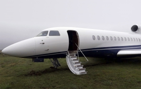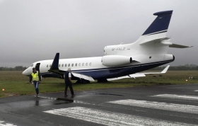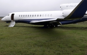 Aproximadamente a las 17:00 horas de esta tarde, en el aeropuerto internacional “Nueva Hespérides” (Salto), una aeronave civil Dassault Falcon 7X con matrícula británica, se despistó luego de aterrizar.