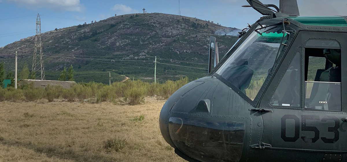 En estos momentos, un helicóptero UH-1H perteneciente al Escuadrón Aéreo nº 5 (Helicópteros), se encuentra colaborando en las tareas de extinción del incendio que afecta la zona del Cerro Pan de Azúcar, en apoyo a la Dirección Nacional de Bomberos.