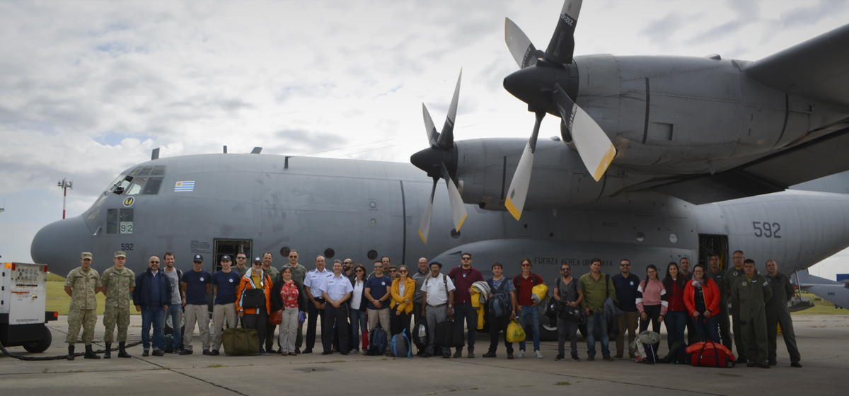 En este vuelo fueron enviados personal técnico del Ejército Nacional, de la Armada Nacional, de la Fuerza Aérea Uruguaya, científicos y corresponsales de medios de comunicación.
