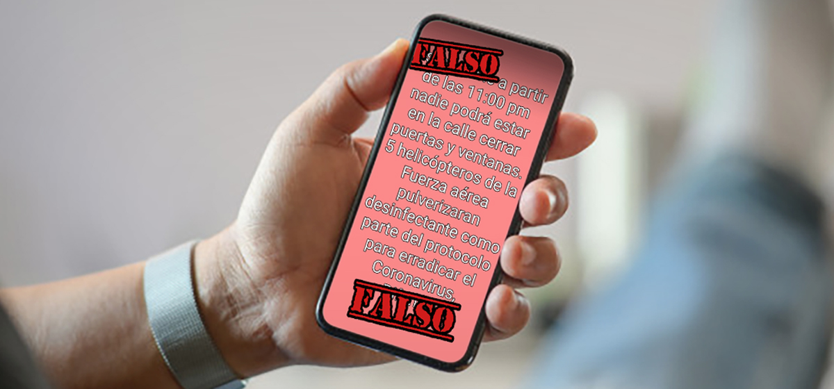 La Fuerza Aérea informa que se encuentra circulando en las redes sociales y medios digitales un anuncio en el que se expresa que la Fuerza Aérea, mediante cinco helicópteros, procedería a fumigar desde las 23:00 horas del día de hoy a efectos de “erradicar” el Coronavirus.