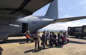 Sobre las 14:15 horas arribó al Aeropuerto Internacional de Carrasco "Cesáreo L. Berisso" la aeronave C-120 Brasilia con 20 pasajeros y sobre las 14:30 horas la aeronave C-130 "Hércules" con 69 pasajeros.