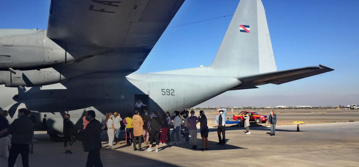 El día de hoy, la aeronave C-130 "Hércules" partió rumbo a Santiago de Chile a fin de trasladar a 32 ciudadanos chilenos.