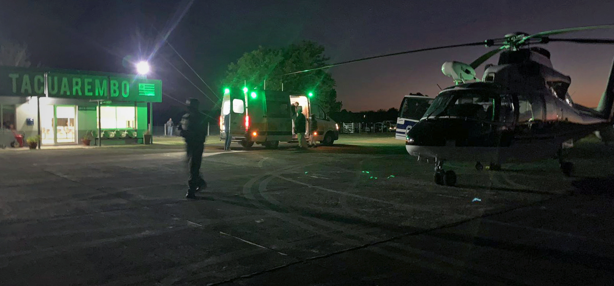 El día de hoy se llevó a cabo una evacuación médica desde Tacuarembó a Montevideo. Se trasladó un paciente de 56 años portador de una endoprótesis aórtica con rotura en la misma y disección de aorta. El AS-365 "Dauphin", perteneciente al Escuadrón Aéreo N.° 5 (Helicópteros), aterrizó en el Hospital Policial y posteriormente se derivó al paciente en una unidad móvil al Hospital Militar.