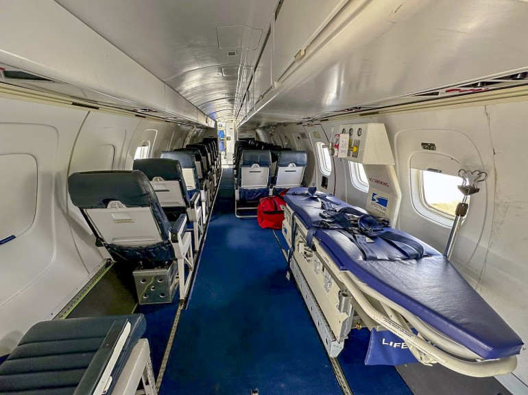 Capacidad: 30 pasajeros y la opción de colocar una camilla para vuelos sanitarios.