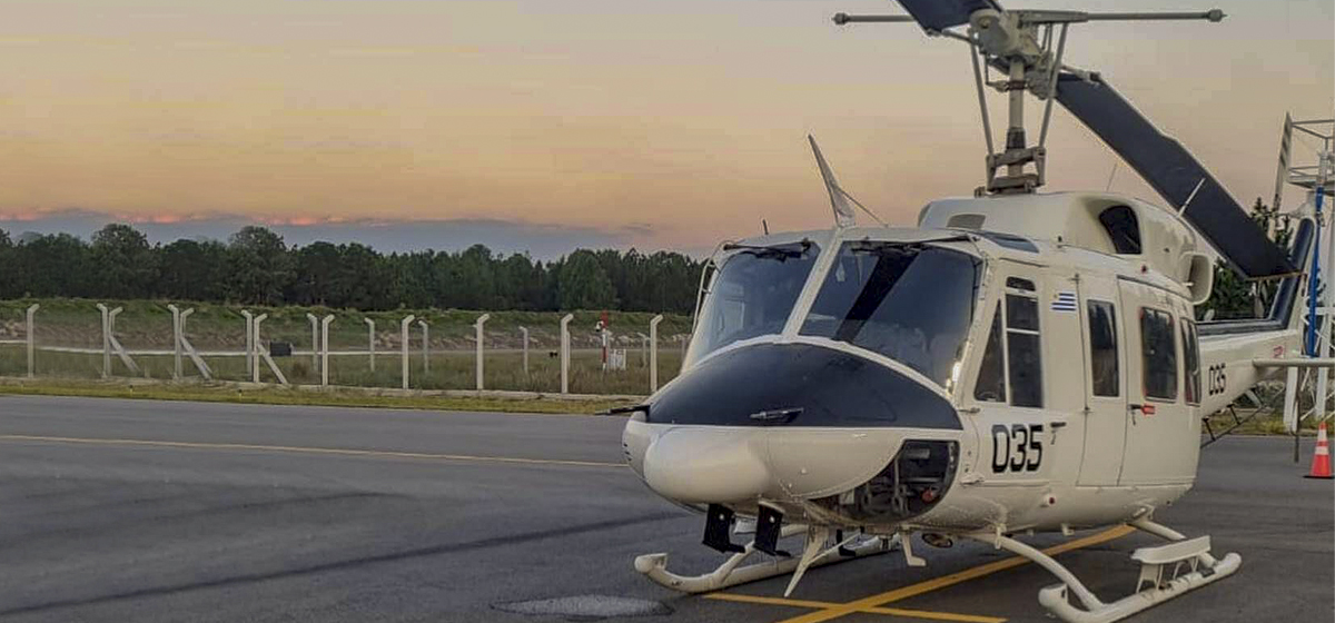 La Fuerza Aérea Uruguaya informa que el helicóptero Bell 212, matrícula FAU 035, está siendo trasladado por vía terrestre, en coordinación con la Policía Caminera, utilizando vehículos especialmente adaptados para garantizar su transporte seguro.