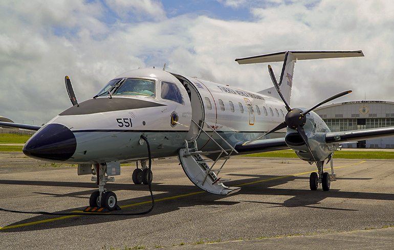 La aeronave C-120 "Brasilia", fabricada por la empresa brasileña Embraer, es un modelo de transporte mediano que combina velocidad, seguridad y comodidad.