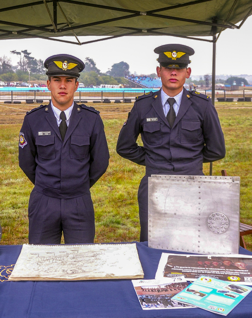 Además, la Escuela Militar de Aeronáutica (EMA) estuvo presente con un stand informativo y la participación de sus cadetes, quienes se encargaron de enseñar y promover la oferta académica del Instituto a todos los interesados. De igual manera, la Escuela Técnica de Aeronáutica (ETA) apoyó con un stand y la participación de sus alumnos, quienes también compartieron información sobre las oportunidades educativas disponibles en su institución.