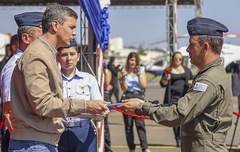 Antes de su retorno a Paraguay, el presidente de la República de dicha nación, Santiago Peña, protagonizó una emotiva ceremonia en la que condecoró a la tripulación uruguaya del avión KC-130 Hércules. Durante el homenaje, subrayó la importancia de la contribución de Uruguay, resaltando la necesidad de continuar fortaleciendo los vínculos de cooperación entre ambas naciones amigas.