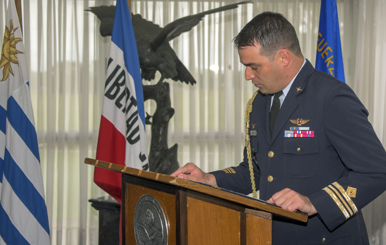 El acto contó con la presencia del Comandante en Jefe de la Fuerza Aérea Uruguaya, General del Aire Luis De León, acompañado por el jefe del Estado Mayor General de la Fuerza Aérea Uruguaya, Brig. Gral. (Av.) Fernando Colina, por el comandante del Comando Aéreo Logístico, Brig. Gral. (Av.) Gaetano Battagliese, y el comandante del Comando Aéreo de Personal, Brig. Gral. (Av.) Juan Mendez.