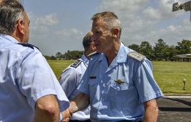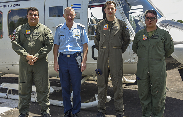 Posteriormente, realizó un sobrevuelo en una aeronave Bell 212 del Escuadrón Aéreo N.º 5, desde donde apreció la Escuela y su entorno. Este medio también fue utilizado para trasladarlo al Comando General de la Fuerza Aérea Uruguaya (CGFAU).