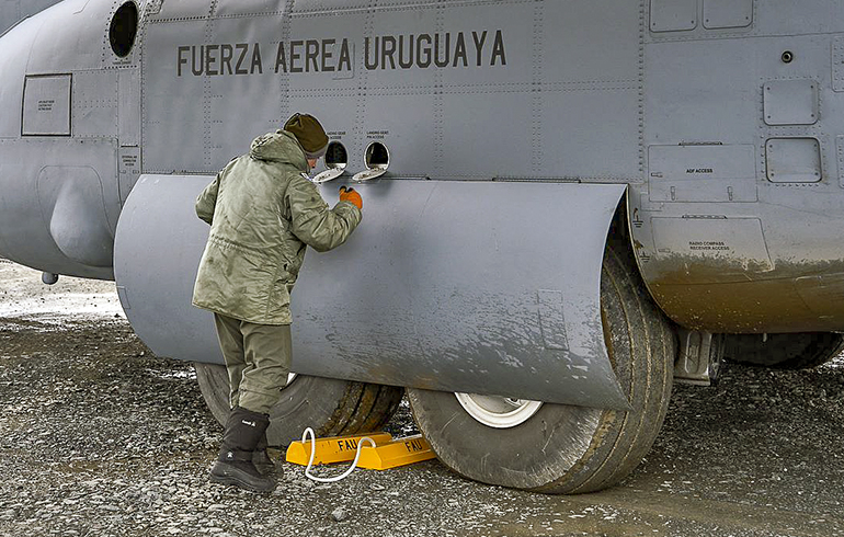 El pasado 21 de febrero, el Ministro de Defensa Nacional, Dr. Armando Castaingdebat, y el Comandante en Jefe de la Fuerza Aérea Uruguaya, General del Aire Fernando Colina, entre otras importantes autoridades, partieron rumbo a Punta Arenas, Chile, a bordo de la aeronave C-120 “Brasilia” FAU 551 desde la Brigada Aérea I (Carrasco). Desde allí, realizaron el cruce hacia la Antártida en un KC-130H Hércules, operación que estuvo sujeta a las condiciones meteorológicas en la región.