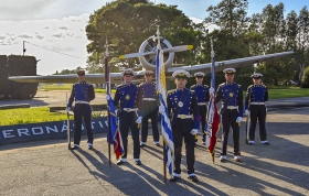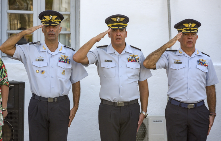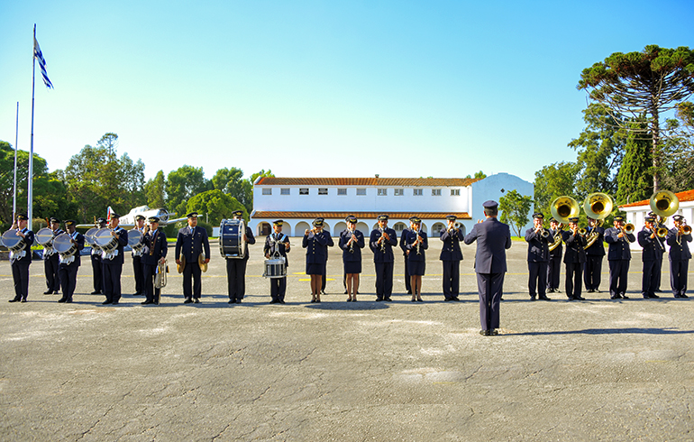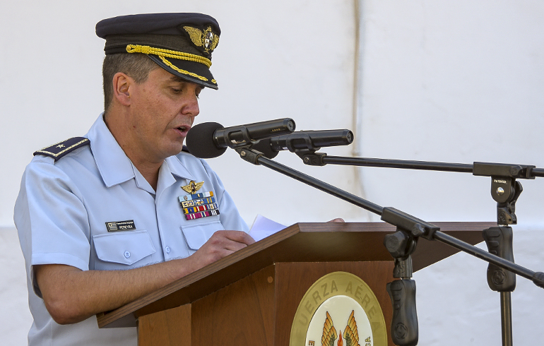 La jornada comenzó con la tradicional revista de los efectivos formados, seguida por la interpretación del Himno Nacional a cargo de la Banda de Músicos de la Fuerza Aérea Uruguaya.