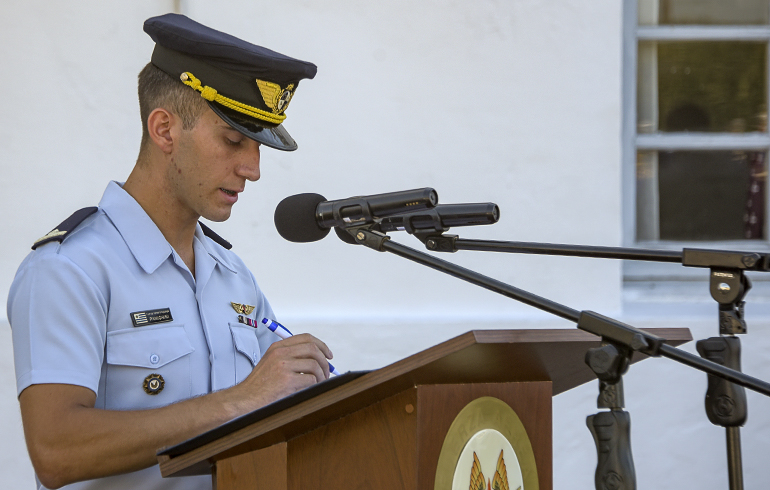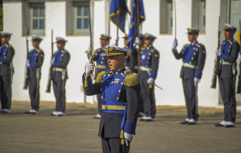 Posteriormente, el Director de la EMA dirigió unas palabras a los presentes, resaltando la importancia del compromiso, y el esfuerzo en la formación de los futuros oficiales de la Fuerza Aérea. Finalmente, la ceremonia culminó con un desfile terrestre y aéreo en honor a las autoridades presentes.