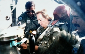 El 21 de febrero de 1995, Mirta Vanni subió a bordo de un Cessna A-37B Dragonfly perteneciente al Escuadrón Aéreo N.° 2 (Caza), convirtiéndose en una de las pocas mujeres en pilotear un avión de combate. Este vuelo histórico, realizado en la Brigada Aérea I de Carrasco, fue un acto de reconocimiento a su destacada trayectoria, y el Comandante en Jefe de la Fuerza Aérea, Tte. Gral. (Av.) Raúl V. Sampedro, fue uno de los responsables de esta invitación. Mirta, siempre profesional, se preparó adecuadamente para el vuelo, que incluyó maniobras acrobáticas, pasadas en vuelo bajo y un aterrizaje exitoso.