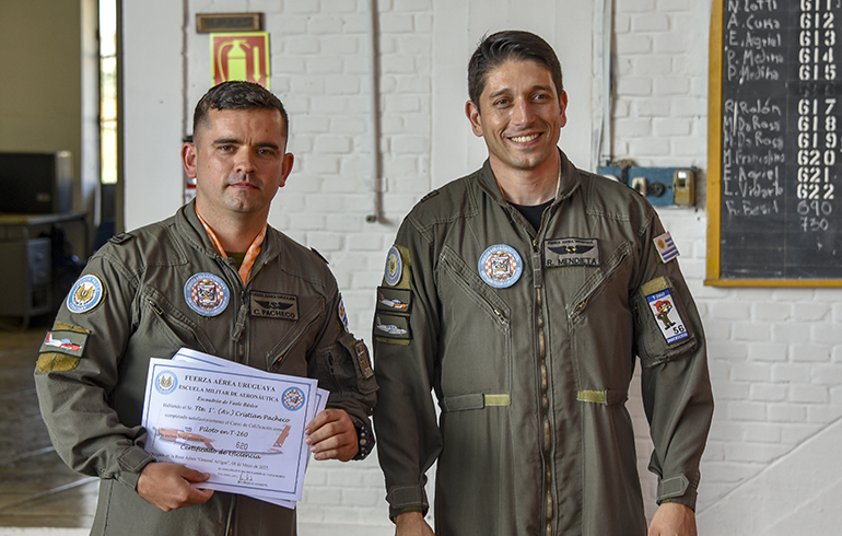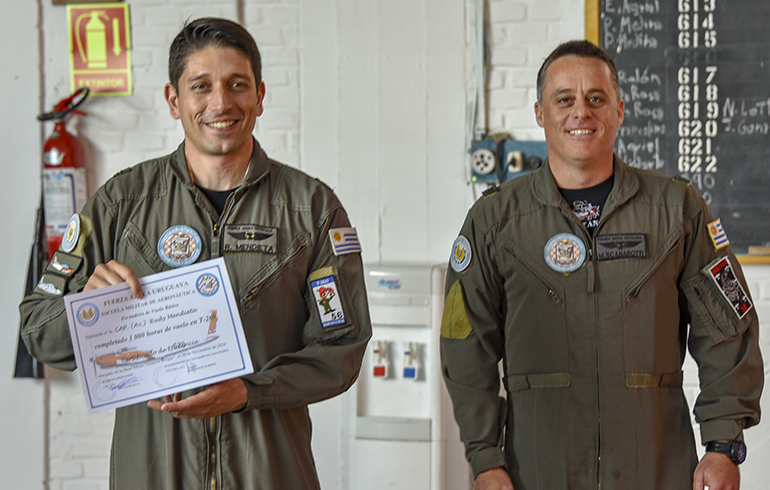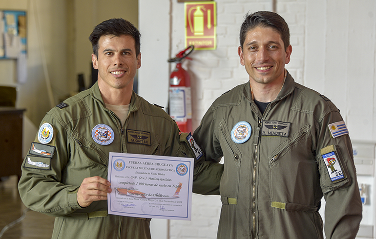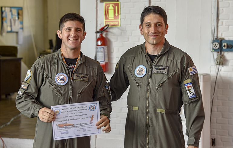 También se reconoció a los oficiales que alcanzaron hitos significativos de horas de vuelo en la aeronave Aermacchi T-260, específicamente las 1000 y 1500 horas: