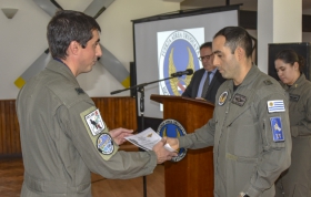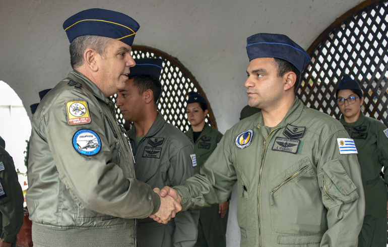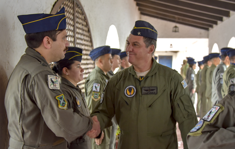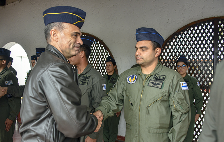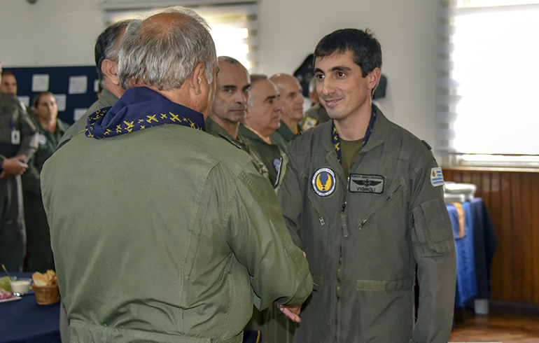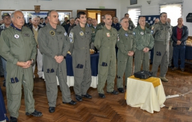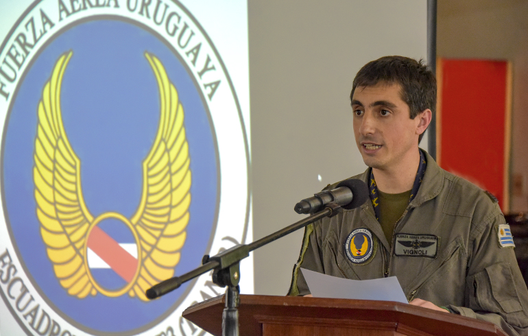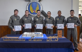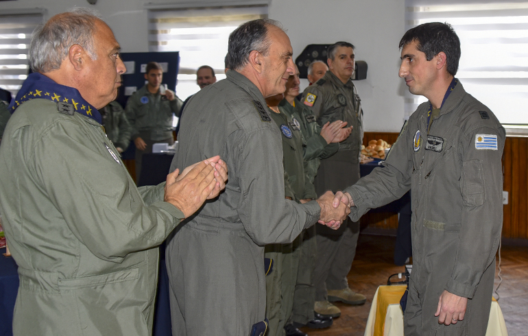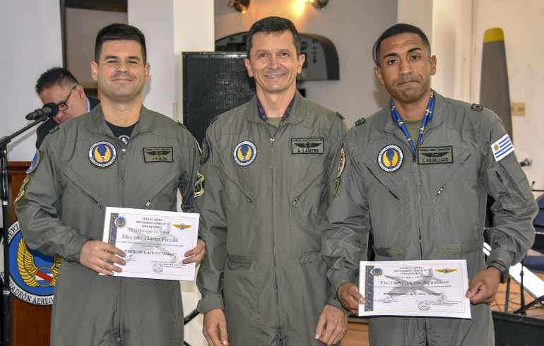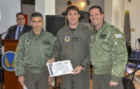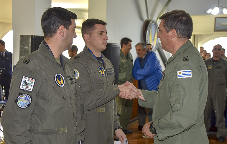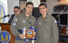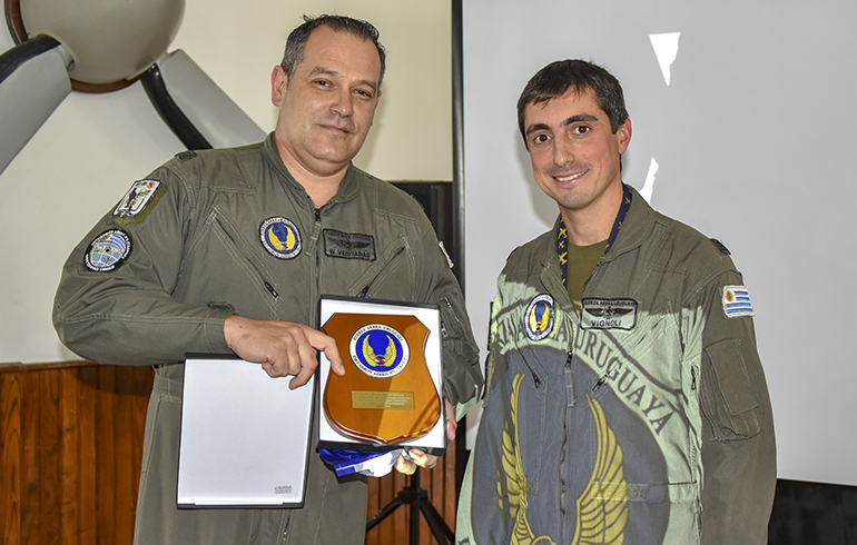 En la entrega de presentes el Tte. Cnel. (Av.) Wiliams Veistaras fue reconocido por su gestión como ex comandante del Escuadrón y el Cap. (Av.) John Despaux fue homenajeado por su rol como ex jefe de Operaciones del Escuadrón.