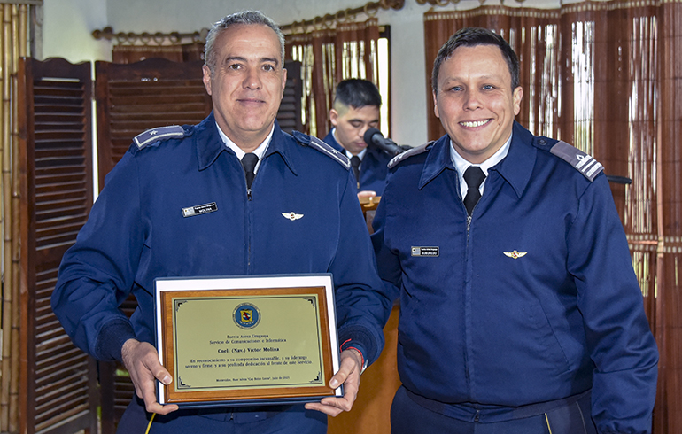 La oportunidad también fue propicia para la entrega de reconocimientos al Cnel. (Nav.) Víctor Molina, quien se desempeñó anteriormente como director del Servicio de Comunicaciones e Informática; y al Sup. At. (R) Oscar Coitiño, al Inst. At. (R) Eduardo Reyno y a la At. 1.ª Cinthya Núñez, quienes prestaron servicios en la Unidad. También recibió una placa el Inst. At. Walter Soba por los 60 años del SITFAA.