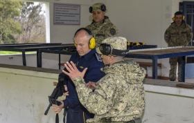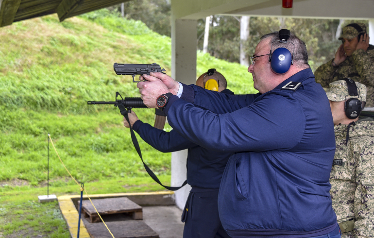 Posteriormente, se realizó una presentación informativa por parte del Director, en la que se expuso la situación actual de la Escuela en cuanto a la cantidad de alumnos, los cursos que se imparten y los distintos niveles educativos. Asimismo, se destacó la formación brindada tanto a los cursos regulares como a los cursos avanzados, así como el convenio vigente con el Instituto Tecnológico Superior (ITS). La visita concluyó con un recorrido por las instalaciones del centro educativo, incluyendo los alojamientos, aulas, secciones de trabajo y el polígono de instrucción.
