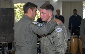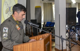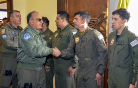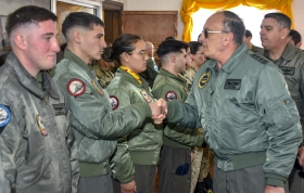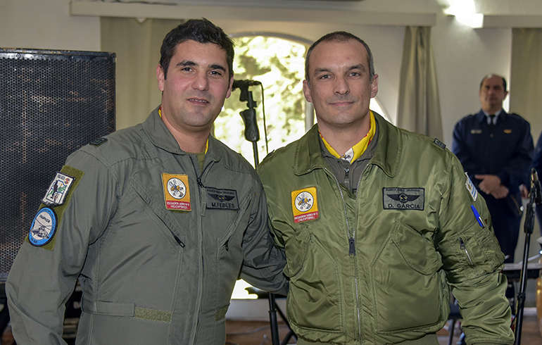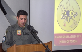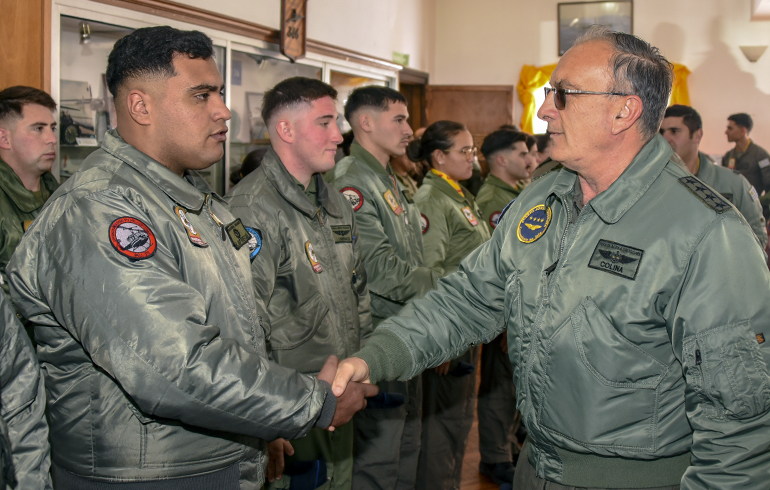 Luego, el comandante del Escuadrón, May. (Av.) Marcelo Febles, dirigió unas palabras en las que destacó la historia operativa del Escuadrón, su crecimiento tecnológico y humano, y la dedicación constante de sus integrantes en el cumplimiento de misiones fundamentales para el país. Reafirmó, además, el compromiso de la unidad con la formación profesional, la preparación técnica y el trabajo en equipo como pilares del éxito operativo.
