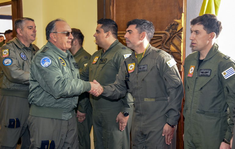 La ceremonia fue presidida por el comandante en jefe de la Fuerza Aérea Uruguaya, Gral. del Aire, Fernando Colina, acompañado por el Director de la Dirección Nacional de Aviación Civil e Infraestructura Aeronáutica, Brig. Gral. (Av.) Leonardo Blengini, el jefe del Estado Mayor General, Brig. Gral. (Av.) Juan Méndez, el comandante del Comando Aéreo de Personal, Brig. Gral. (Av.) Walter Pérez, el comandante del Comando Aéreo de Operaciones, Brig. Gral. (Av.) Alejandro Trujillo, y el Brig. Gral. (Av.) (R) Gaetano Battagliese. También participaron el director del Sistema Nacional de Emergencia, Sr. Leandro Palomeque; el director del SAME 105, Dr. Gustavo Grecco; así como oficiales generales de las Fuerzas Armadas y del Ministerio del Interior, en actividad y retiro, agregados aeronáuticos acreditados ante nuestro país, personal subalterno, funcionarios civiles, familiares y amigos.