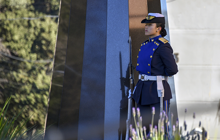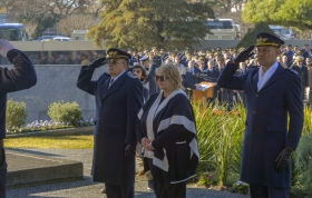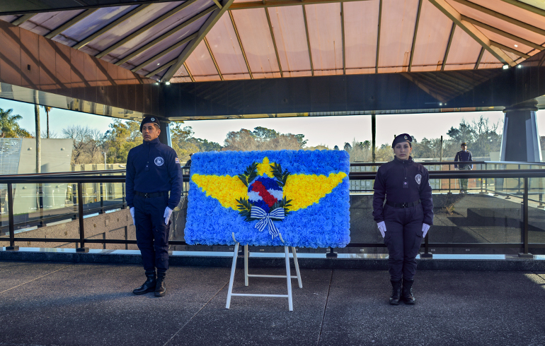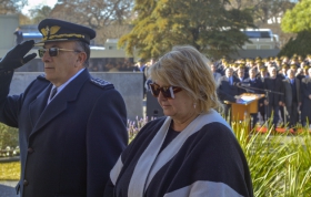 Seguidamente, la ministra de Defensa Nacional acompañada por el Comandante en Jefe de la Fuerza Aérea y el Sup. AT Antonio Piñeiro, colocaron una ofrenda floral en memoria de los homenajeados.
