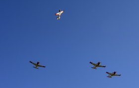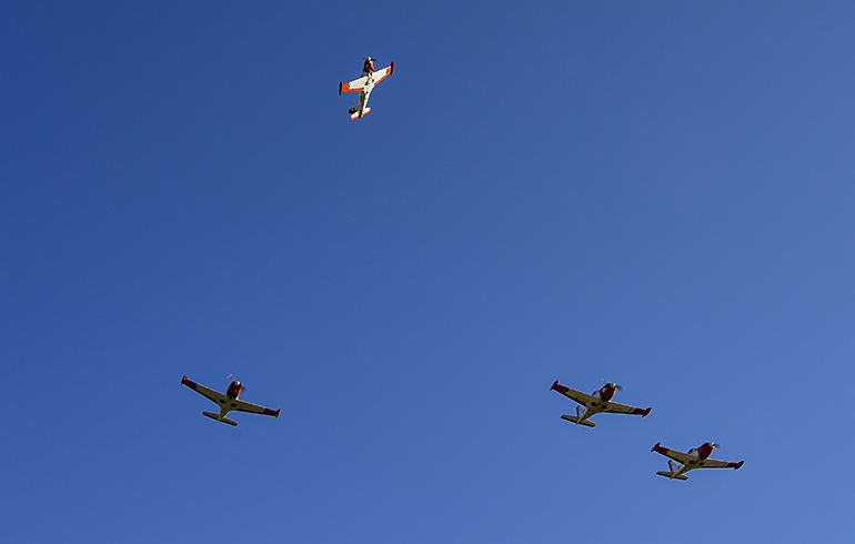 La jornada concluyó con el toque de silencio y el pasaje aéreo de una formación de aeronaves Aermacchi T-260, pertenecientes al Escuadrón de Vuelo Básico de la Escuela Militar de Aeronáutica, en honor a quienes integran la denominada “Escuadrilla del Silencio”.