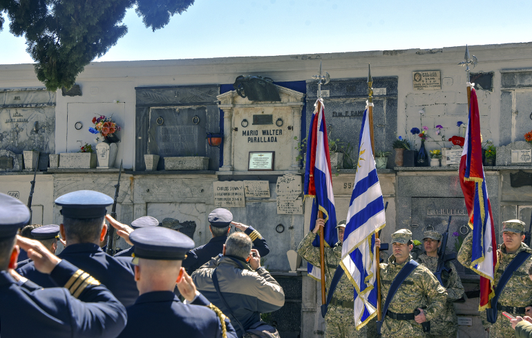Con motivo de la conmemoración del centenario de su desaparición física, esta mañana se desarrolló una ceremonia en el Panteón de la Fuerza Aérea del Cementerio de Durazno, ciudad que lo vio nacer, que contó con la presencia del comandante en jefe de la Fuerza Aérea Uruguaya, Gral. del Aire Fernando Colina, del jefe del Estado Mayor General, Brig. Gral. (Av.) Juan Méndez, del comandante del Comando Aéreo de Operaciones, Brig. Gral. (Av.) Alejandro Trujillo, del comandante de Brigada Aérea II, Cnel. (Av.) Shandelaio González, de autoridades departamentales, de militares en actividad y retiro, de autoridades policiales, de familiares del Tte. 2.° Mario Walter Parallada, y de público en general.