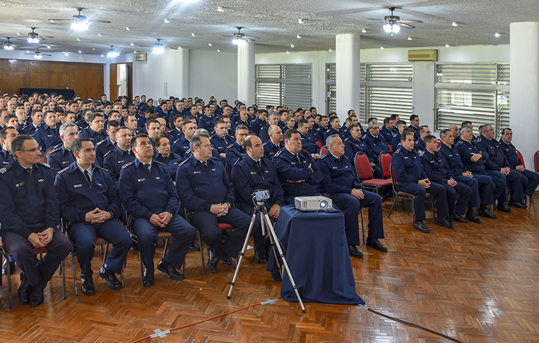 La ponencia estuvo a cargo del Gral. del Aire Fernando Colina, quien realizó una introducción al tema indicando los principales lineamientos para el próximo quinquenio, y destacando los valores de nuestra organización tales como el espíritu de cuerpo y el trabajo en equipo como ejes fundamentales para la concreción de los objetivos de la Fuerza.