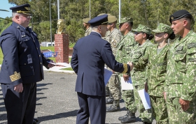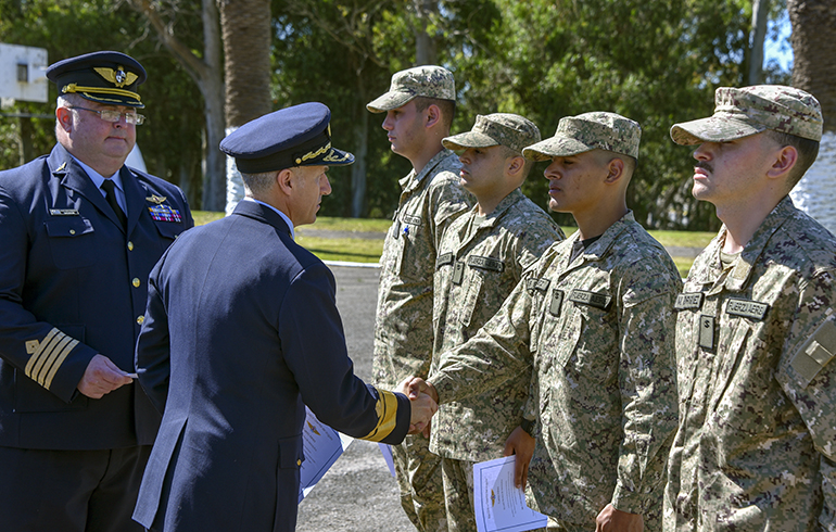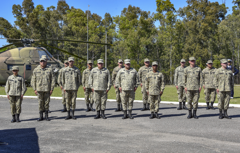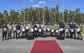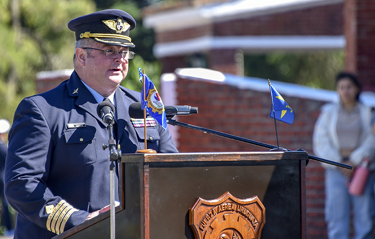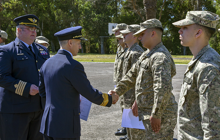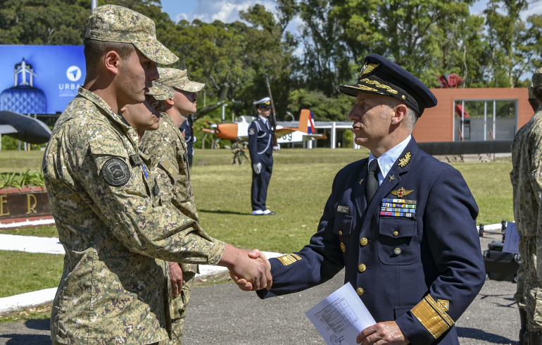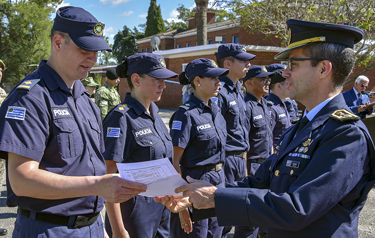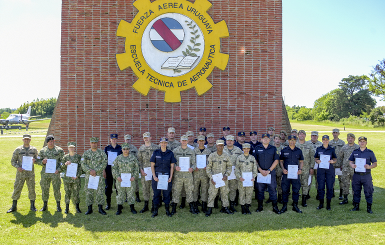 Posteriormente, se efectuó la entrega de diplomas y certificados a los alumnos de la Fuerza Aérea Uruguaya que completaron satisfactoriamente la capacitación: