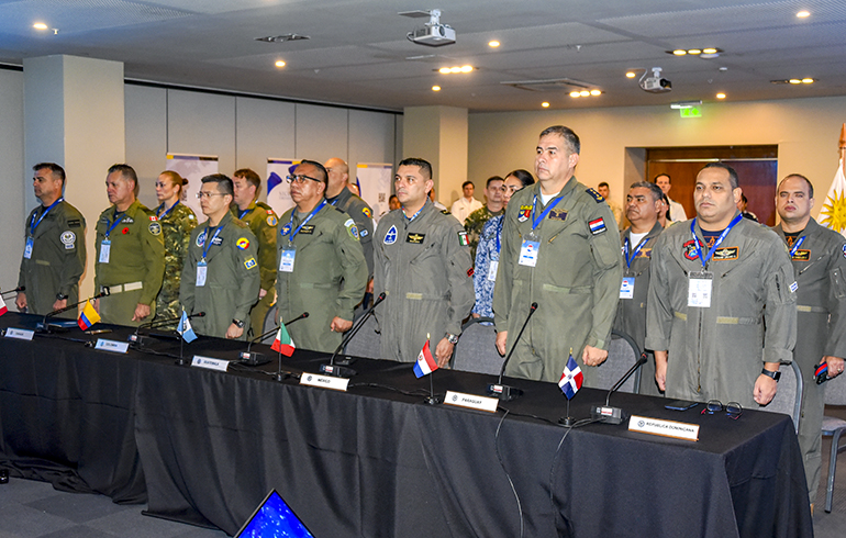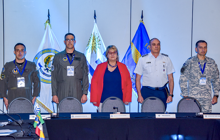 La ceremonia de apertura se llevó a cabo el pasado martes 11 de noviembre en el Hotel Dazzler Montevideo, y contó con la presencia de la Ministra de Defensa Nacional, Sra. Sandra Lazo; el Comandante en Jefe de la Fuerza Aérea, General del Aire Fernando Colina; y el Secretario General del SICOFAA, junto a demás autoridades nacionales e internacionales.