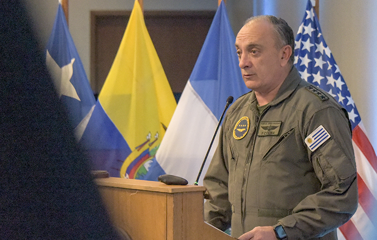 Posteriormente, hicieron uso de la palabra, el Comandante en Jefe de la Fuerza Aérea Uruguaya, Gral. del Aire Fernando Colina y el Presidente del Comité Cnel. (Nav.) Sebastián Carlevaro; quienes resaltaron la importancia del trabajo conjunto, la confianza y la solidaridad que caracterizan al SICOFAA.