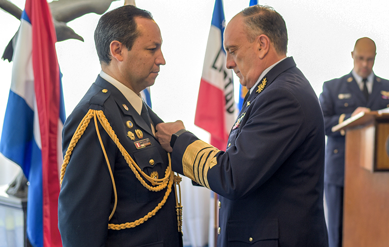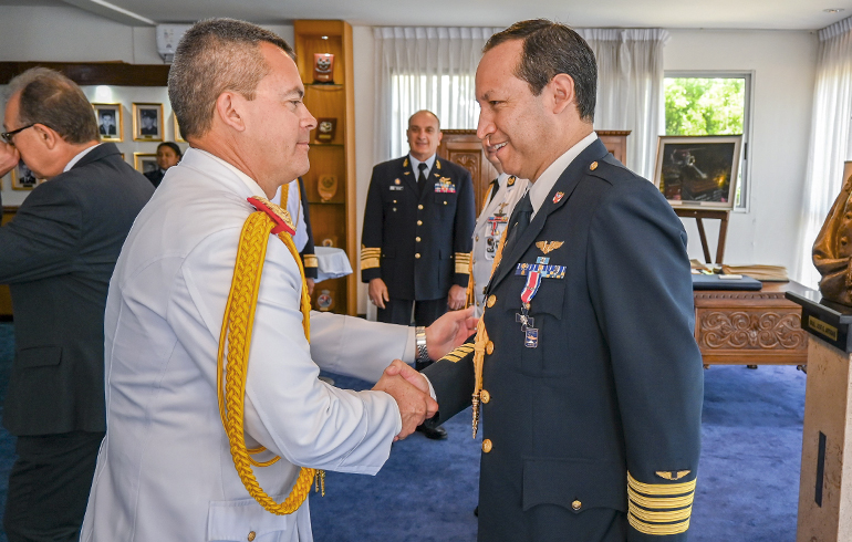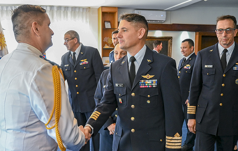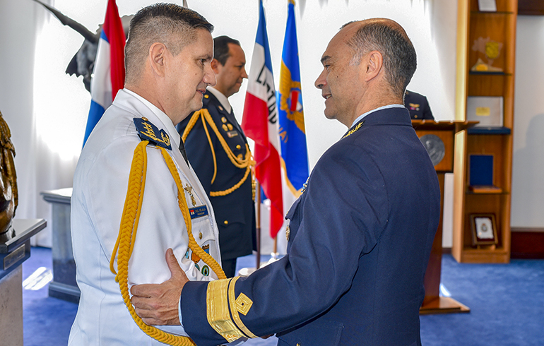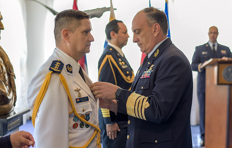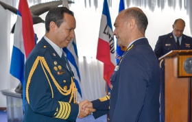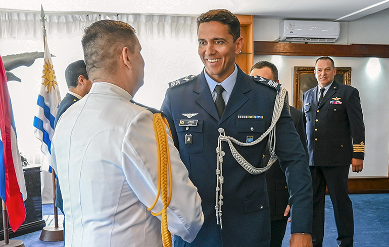 Este jueves 27 de noviembre se hizo entrega de la condecoración “Al Mérito Aeronáutico” en la categoría de oficial al agregado aéreo de la Embajada del Paraguay en la República Oriental del Uruguay, Cnel. DCEM Henry Rejala; y al agregado aéreo de la Embajada del Perú en Argentina y concurrente en la República Oriental del Uruguay, Cnel. FAP Carlos Sánchez.