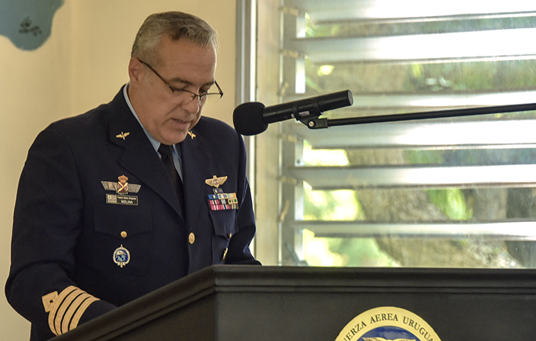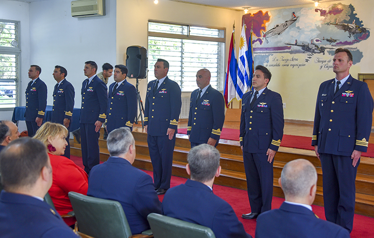 La ceremonia se desarrolló en el Comando General de la Fuerza Aérea y contó con la presencia de la ministra de Defensa Nacional, Sra. Sandra Lazo; del comandante en jefe de la Fuerza Aérea Uruguaya, Gral. del Aire Fernando Colina; del jefe del Estado Mayor de la Defensa, Gral. del Aire Rodolfo Pereyra; del director nacional de Aviación Civil e Infraestructura Aeronáutica, Brig. Gral. (Av.) Leonardo Blengini; del jefe del Estado Mayor General, Brig. Gral. (Av.) Juan Méndez; del comandante del Comando Aéreo de Personal, Brig. Gral. (Av.) Walter Pérez; del comandante del Comando Aéreo de Operaciones, Brig. Gral. (Av.) Alejandro Trujillo; de personal superior y subalterno de la Fuerza Aérea Uruguaya, tanto en actividad como en situación de retiro; de oficiales del Ejército Nacional y de la Armada Nacional; del director de la ECEMA, Cnel. (Nav.) Víctor Molina; del jefe de la División Estudios y Planificación Docente de la ECEMA, Teniente Coronel (Av.) Diego García de agregados aéreos, militares, navales y de defensa de países amigos; de otras autoridades nacionales; de docentes, instructores, alumnos, asesores y amigos de la ECEMA.