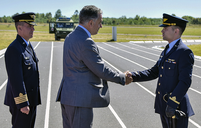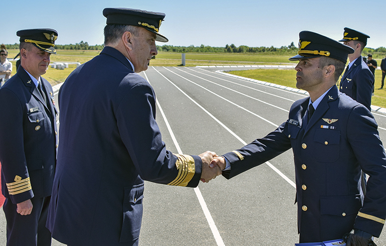 La solemne ceremonia contó con la presencia del señor Presidente de la República, Prof. Yamandú Orsi; de la señora ministra de Defensa Nacional, Sandra Lazo; del comandante en jefe de la Fuerza Aérea Uruguaya, Gral. del Aire Fernando Colina; del jefe del Estado Mayor de la Defensa, Gral. del Aire Rodolfo Pereyra; del director nacional de Aviación Civil e Infraestructura Aeronáutica, Brig. Gral. (Av.) Leonardo Blengini; del jefe del Estado Mayor General, Brig. Gral. (Av.) Juan Méndez; del comandante del Comando Aéreo de Personal, Brig. Gral. (Av.) Walter Pérez; del Brig. Gral. (Av.) Alejandro Trujillo; del comandante del Comando Aéreo de Operaciones, Cnel. (Av.) Pedro Cardeillac; así como de autoridades nacionales y extranjeras, militares y civiles.