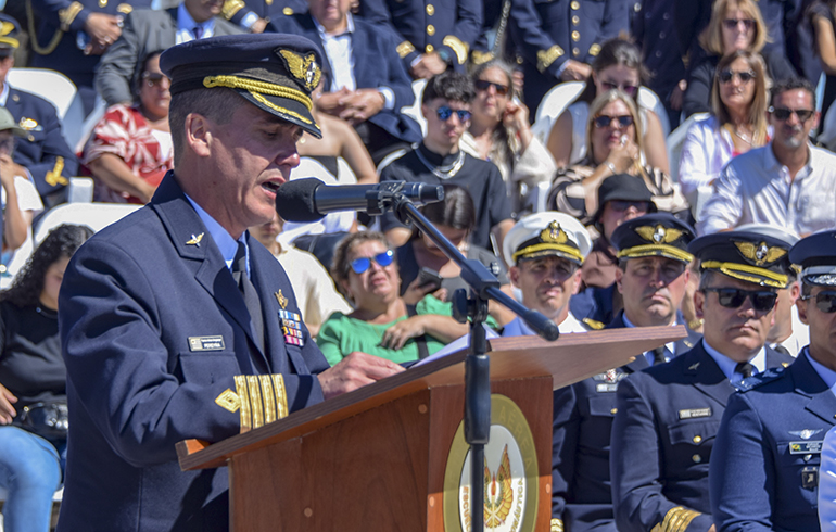 La ceremonia continuó con las palabras del director de la Escuela Militar de Aeronáutica, Cnel. (Av.) Juan Pereyra, quien resaltó el esfuerzo, la disciplina y el compromiso demostrados por los egresados a lo largo de su exigente proceso de formación, exhortándolos a honrar, con su conducta y profesionalismo, los valores y principios de la Institución.