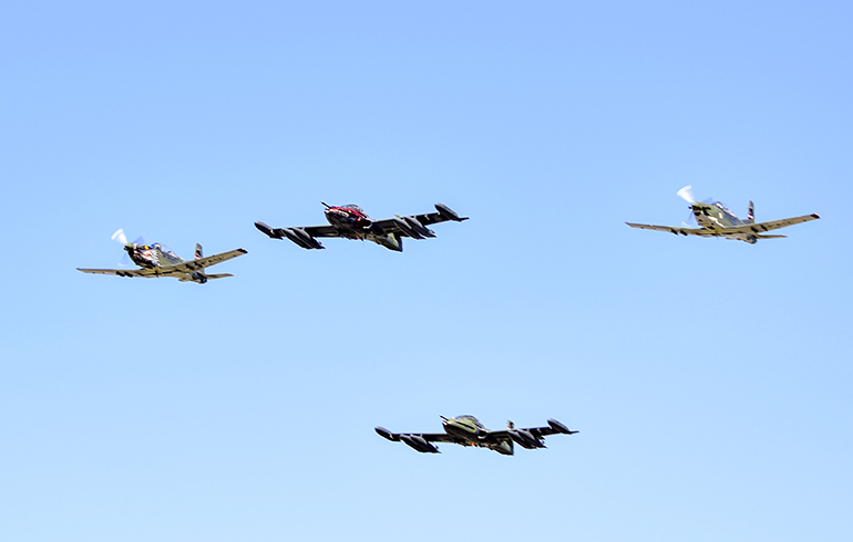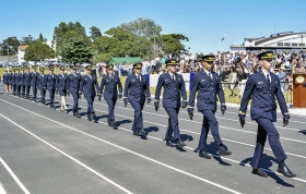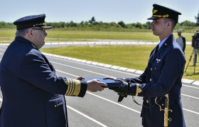 Seguidamente, el comandante en jefe de la Fuerza Aérea Uruguaya tomó el juramento de honor a los oficiales, compromiso solemne mediante el cual asumieron la indeclinable responsabilidad de defender la independencia, la Constitución y las instituciones democráticas de la República. En ese preciso instante, una escuadrilla de aeronaves A-37 Dragonfly y PC-7 Pilatus sobrevoló el lugar, rindiendo un emotivo homenaje a los noveles alféreces.