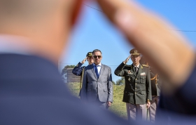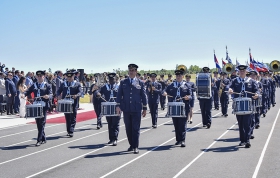 El acto dio comienzo con el arribo del señor Presidente de la República, quien, acompañado por el director de la Escuela Militar de Aeronáutica, Cnel. (Av.) Juan Pereyra, realizó la revista a los efectivos formados. Seguidamente, la Banda de Músicos de la Fuerza Aérea “Cnel. (Rva.) Walter Miños” interpretó las estrofas del Himno Nacional, enmarcando el inicio de la ceremonia en un clima de profundo respeto y sentimiento patriótico.