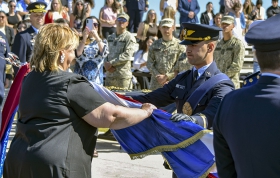 A continuación, se procedió a la lectura de la Orden de la Unidad y a la entrega de los pabellones patrios a los nuevos abanderados del Instituto, gesto cargado de simbolismo que reafirma la continuidad de los valores, tradiciones y el espíritu de servicio que distinguen a la Escuela Militar de Aeronáutica y a la Fuerza Aérea Uruguaya.
