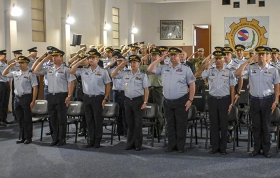 A continuación, se reconoció a los alumnos de los cursos internos y externos que obtuvieron los mejores promedios y calificaciones en el presente año lectivo, así como a aquellos que tuvieron una destacada actuación. Por los cursos regulares avanzados fueron reconocidos el AT 3.ª Gastón Umpiérrez, el AT 3.ª Erick García, el AT 3.ª Pablo Galván, el AT 3.ª Jason Chagas, el AT 3.ª Manuel Franco, el Sr. Santiago Trujillo y el Sr. Facundo Monzón. Por su desempeño en los cursos regulares básicos fueron reconocidas la Sdo. 1.ª (SG) Daniela Rodríguez y la Sdo. 1.ª (SG) Melody Silva. Por los cursos de pasaje de grado recibieron un reconocimiento la AT Ppal. Fabiana Acosta, el Cbo. 2da (SG) Guillermo Linkert, y el Sdo. 1.ª (SG) Lázaro Gigena. Por los cursos de capacitación fueron reconocidos el Sgto. 1.º (SG) Alejandro Borsani y el AT Ppal. Martín Piegas. Por los cursos de capacitación específica recibió un reconocimiento el Sdo. 1.ª (SG) Joaquín Jackson; mientras que el aspirante técnico Segundo año Guzmán Suárez y el aspirante técnico Primer año Aaron Pérez fueron distinguidos por su destacado papel como derechas de sus respectivos cursos.