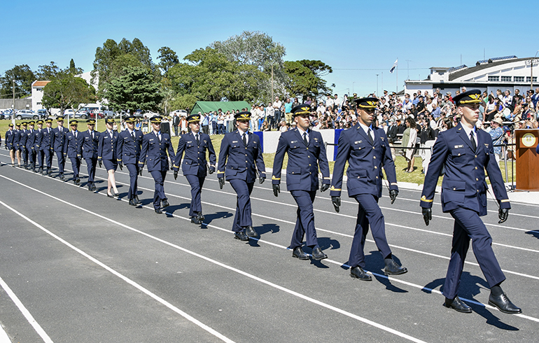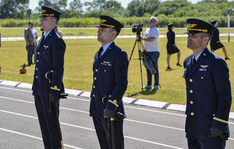 Asimismo, participaron ex comandantes en jefe de la Fuerza Aérea Uruguaya, personal superior en actividad y retiro, agregados de defensa y aeronáuticos acreditados ante el país, embajadores de naciones amigas, familiares de los egresados e invitados especiales, quienes acompañaron con orgullo y emoción este trascendente acontecimiento.