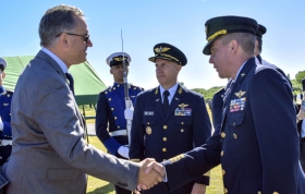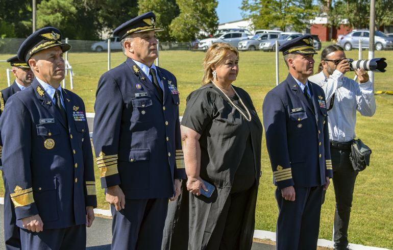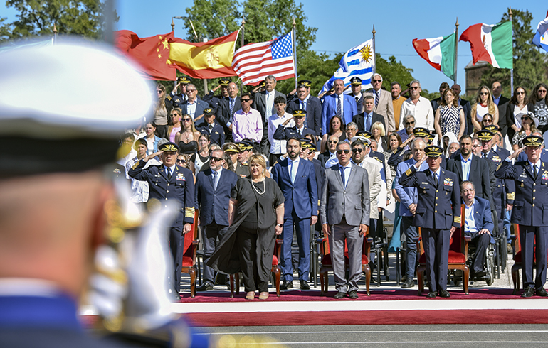 La solemne ceremonia contó con la presencia del señor Presidente de la República, Prof. Yamandú Orsi; de la señora ministra de Defensa Nacional, Sandra Lazo; del comandante en jefe de la Fuerza Aérea Uruguaya, Gral. del Aire Fernando Colina; del jefe del Estado Mayor de la Defensa, Gral. del Aire Rodolfo Pereyra; del director nacional de Aviación Civil e Infraestructura Aeronáutica, Brig. Gral. (Av.) Leonardo Blengini; del jefe del Estado Mayor General, Brig. Gral. (Av.) Juan Méndez; del comandante del Comando Aéreo de Personal, Brig. Gral. (Av.) Walter Pérez; del Brig. Gral. (Av.) Alejandro Trujillo; del comandante del Comando Aéreo de Operaciones, Cnel. (Av.) Pedro Cardeillac; así como de autoridades nacionales y extranjeras, militares y civiles.