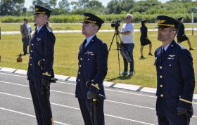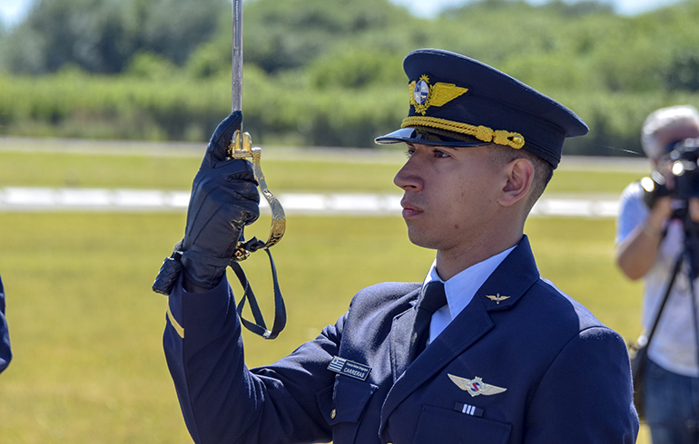 Seguidamente, el comandante en jefe de la Fuerza Aérea Uruguaya tomó el juramento de honor a los oficiales, compromiso solemne mediante el cual asumieron la indeclinable responsabilidad de defender la independencia, la Constitución y las instituciones democráticas de la República. En ese preciso instante, una escuadrilla de aeronaves A-37 Dragonfly y PC-7 Pilatus sobrevoló el lugar, rindiendo un emotivo homenaje a los noveles alféreces.