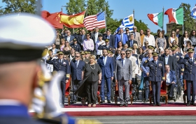 El acto dio comienzo con el arribo del señor Presidente de la República, quien, acompañado por el director de la Escuela Militar de Aeronáutica, Cnel. (Av.) Juan Pereyra, realizó la revista a los efectivos formados. Seguidamente, la Banda de Músicos de la Fuerza Aérea “Cnel. (Rva.) Walter Miños” interpretó las estrofas del Himno Nacional, enmarcando el inicio de la ceremonia en un clima de profundo respeto y sentimiento patriótico.