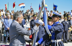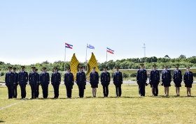 A continuación, se procedió a la lectura de la Orden de la Unidad y a la entrega de los pabellones patrios a los nuevos abanderados del Instituto, gesto cargado de simbolismo que reafirma la continuidad de los valores, tradiciones y el espíritu de servicio que distinguen a la Escuela Militar de Aeronáutica y a la Fuerza Aérea Uruguaya.